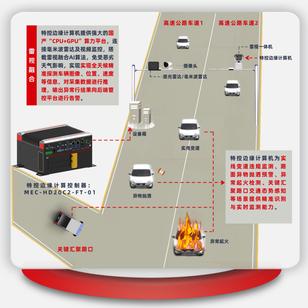 通過集成特控工控機(jī)、服務(wù)器等尖端硬件的新型智慧高速解決方案,我們不僅實(shí)現(xiàn)了收費(fèi)場景的極致協(xié)同,更將事故預(yù)警與快速處置能力推向了新的高度,為高速公路裝上了“智慧之眼”,實(shí)現(xiàn)實(shí)時(shí)監(jiān)測(cè)與精準(zhǔn)智能分析,極大地提升了高速公路的智能化、高效化與綠色化水平,為現(xiàn)代綜合交通運(yùn)輸體系的構(gòu)建提供了堅(jiān)實(shí)的支撐。