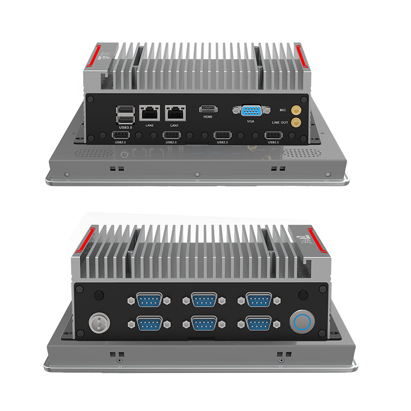 外觀設(shè)計:鋁合金一體成型,工藝精細(xì),科技時尚低功耗:英特爾®賽揚®J1900 板載處理器,TDP 10W穩(wěn)定可靠:純工業(yè)無風(fēng)扇設(shè)計,大面積鋁鰭散熱,箱體材質(zhì)可抗接觸式6Kv強(qiáng)電磁干擾;液晶屏接觸處加強(qiáng)型密封膠圈設(shè)計,面板防水防撞擊接口豐富:2*LAN(Intel),6*COM,1*USB3.0,5*USB2.0,1*HDMI,1*VGA,1*MIC In, 1*Line